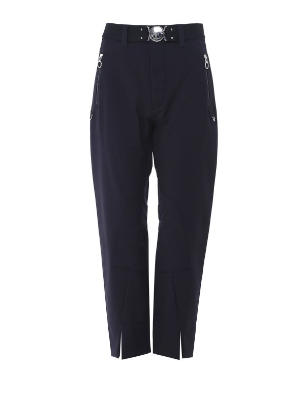 The High Stunt tech pants are a cool, casual option for everyday wear. Featuring a snap button fly, waist belt, angled front zip pockets with silver ring pulls and patch pockets to the back, these comfortable stretch pants are chic and sophisticated. At the inside leg, the pants feature a slanted patch inset detail with darted seams, while vent openings on the front hem complete the look.
