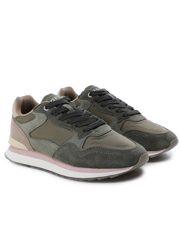 The City Los Angeles Trainers by HOFF combine suede overlays with textile panels for a layered, athletic-inspired profile. These trainers feature a lace-up fastening, padded collar and a stacked, moulded midsole for everyday support. The heel cap is embossed with the HOFF logo and the rubber outsole reveals a map-inspired print beneath. Finished with flat woven laces and tonal stitching, they offer structured construction with lightweight textile sections for added movement and durability.