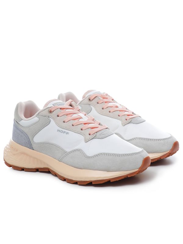 HOFF's Toulouse II Trainers are a fresh style for your new season wardrobe. Featuring a leather and nylon construction in a dreamy palette of pastel hues, these HOFF trainers add a subtle touch of colour to your outfits. They're finished with a chunky, waffle-pattern sole, signature branding at the heel and baby pink laces.