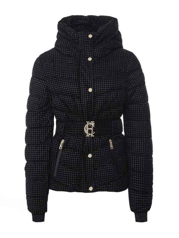 The Arosa Jacket is a belted, hooded quilted jacket from Holland Cooper. Designed to define the waist, it has a central zip with a press-stud placket, zipped hand pockets and an HC gold buckle to secure the belt. The padded, quilted construction offers insulated warmth and stretch inner cuffs help lock out the cold. Finished with gold metal hardware and compact quilting, this jacket balances functional details with a neat silhouette for everyday layered looks. It pairs easily with boots and tailored trousers for a polished finish.
