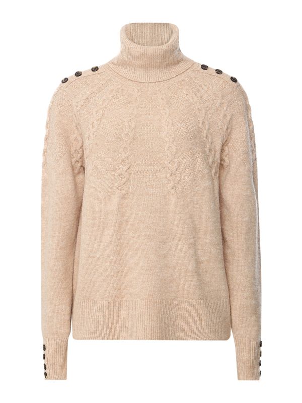 Get an effortlessly elegant look this season with the Holland Cooper Astoria knit. This beautifully soft sweater has been designed with a slouchy fit and features a cosy roll neck, raglan sleeves and ribbed trims. Cable stitch details around the neckline and horn button hardware complete the look.