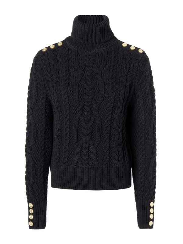 Get cosy this season with the Holland Cooper Belgravia jumper. This elegant knit boasts a luxurious cable knit design and offers an effortlessly stylish look for off-duty days. The sweater features a chic roll neck, thick ribbed cable knit trims and iconic HC metal hardware at the shoulders and cuffs. Team with your favourite jeans or leather leggings.