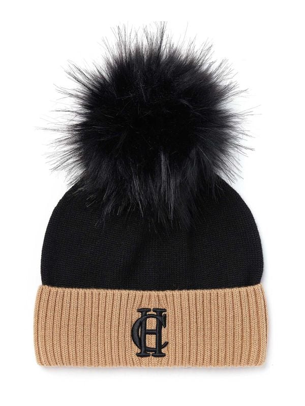 Holland Cooper presents the Chelsea Bobble Hat, a cosy knitted beanie with a ribbed fold-over cuff and embroidered HC monogram to the front. A plush, voluminous bobble crowns the design for a playful finish, while the snug knit provides everyday warmth. The fold-over cuff gives extra protection around the ears and helps the hat retain its shape through wear. Pair with a winter coat or layered knits for cold-weather outfits, or choose it as a considered gift for someone who favours branded winter accessories.