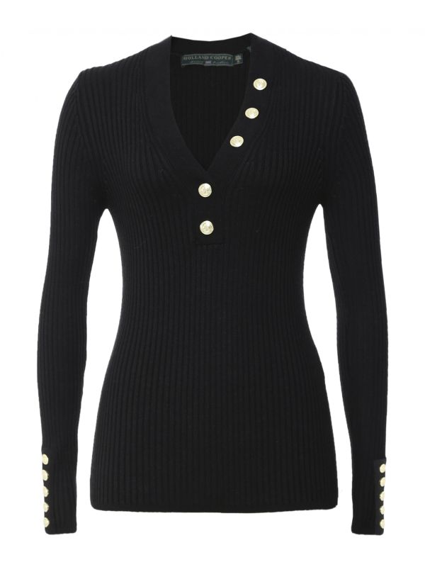 Get a refined everyday look with the Holland Cooper classic button V-neck knit. This lightweight sweater is the perfect off-duty piece, crafted in a sumptuously soft cotton blend and featuring a flattering V-neck and ribbed design. This Holland Cooper knit is complete with signature button detailing at the collar, placket and cuffs for an authentic finishing touch.