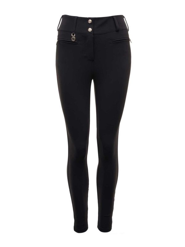 The Holland Cooper high-waisted contour pants are made from a soft stretchy material for elevated comfort, movement and style. These flattering slim-fit pants feature signature Holland Cooper gold-tone buttons and hardware and are complete with zip pockets at the front. Wear them with laid-back tees and sneakers or dress them up with a blouse and pumps for the ultimate in office chic.