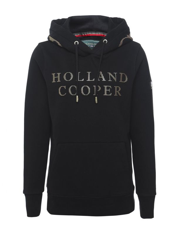 Add a touch of luxury to your off-duty wardrobe with the Holland Cooper Essential hoodie. Crafted in a comfortable cotton blend with an adjustable drawstring hood, this relaxed hoodie is perfect for everyday wear. It features metallic graphics on the front and hood, embossed gold-tone hardware and a logo patch to the sleeve for an authentic finish. Team with your favourite denim or joggers for a cool, casual look.