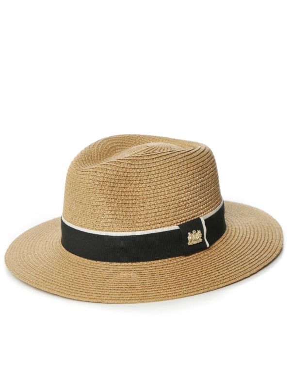 The Francesca hat by Holland Cooper is a delightful sun hat for your summer accessories collection. This straw hat is handmade and boasts a classic trilby shape with a contrasting cotton trim, complete with a signature gold HC rivet offering a contemporary style. Wear it with everything from shorts to summer dresses.