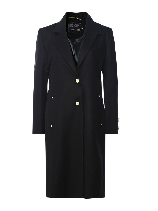 The Holland Cooper Regency coat is a full-length tailored coat with an elegant look. Expertly crafted from wools woven in the UK, this fitted Holland Cooper coat features a single-breasted button fastening, decorative HC back buckle and gold-tone rivets at the cuffs. Wear the coat open or closed for an effortlessly chic appearance.