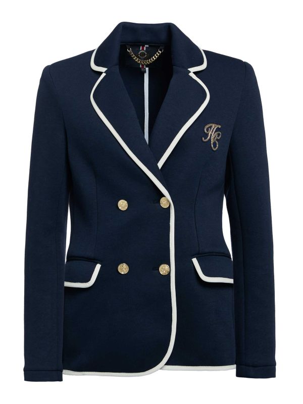 The Henley Double Breasted Blazer by Holland Cooper is a chic style with a vintage-inspired design. Crafted from a heavyweight knitted shell fabric, this Holland Cooper blazer is cut for a slim, tailored fit. It features a four-button closure, contrast piped edges, pretty HC badge on the chest and welt pockets with flaps.
