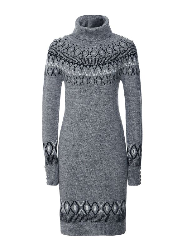 Made from a luxurious jacquard knit with a flattering fitted silhouette, the Holland Cooper Heritage jumper dress is both comfortable and effortlessly elegant. Designed with a cosy roll neck, ribbed trims and signature gold-tone hardware on the shoulders and cuffs, this stylish knit is easy to style with tights and ankle boots.