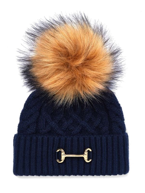 Upgrade your cosy collection with the Holland Cooper Horsebit Bobble Hat. Knitted from a premium blend, this Holland Cooper hat is a beanie style with a classic cable knit design. It has a ribbed brim finished with branded horsebit hardware and a large fluffy pom pom. Combining luxury and warmth, this beanie is a must-have for the cold weather.