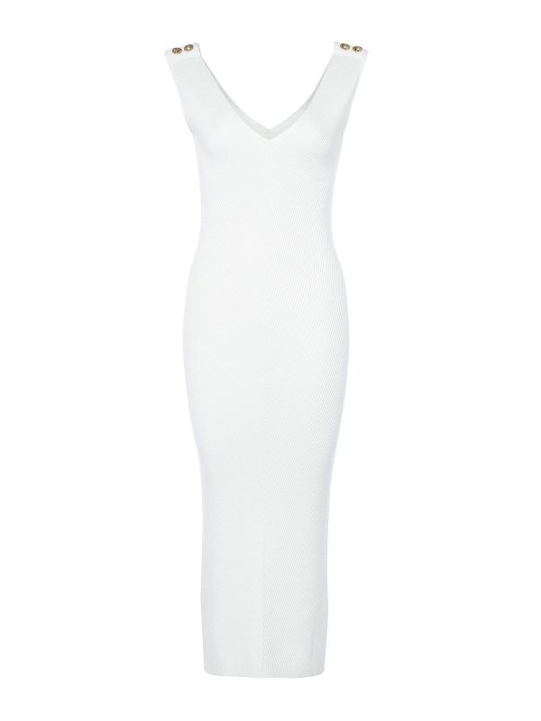 The Holland Cooper Kensington dress is a super flattering must-have to invest in this season. Expertly crafted from ribbed fabric, the dress has been cut to a midi length. Featuring a v neckline and slits to the side the sleeveless dress is complete with iconic Holland Cooper hardware to the shoulders.