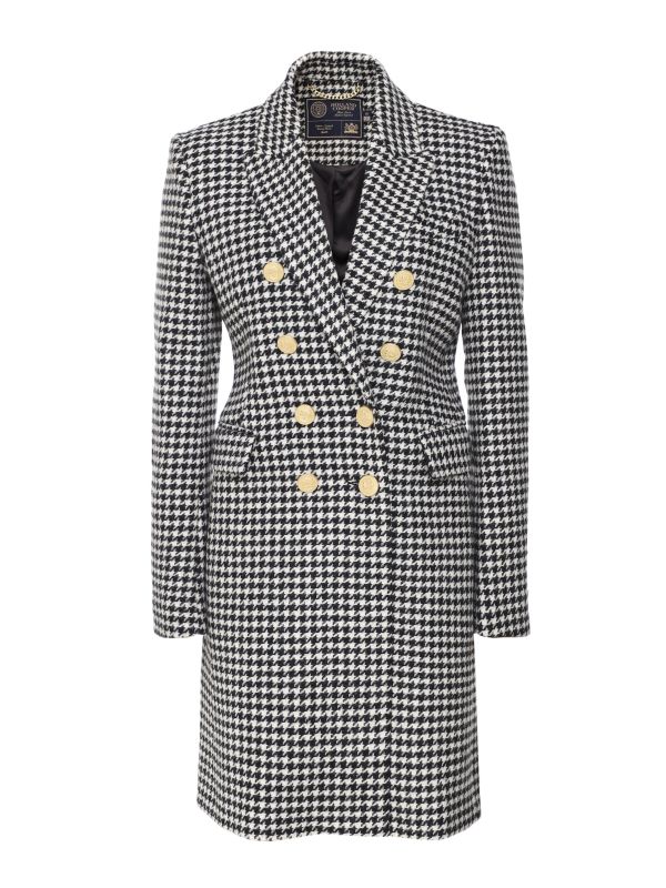 Get an on-trend military-inspired look this season with the Holland Cooper Knightsbridge houndstooth coat. Expertly crafted in the UK from premium wool, the Holland Cooper coat features notched lapels, a double-breasted construction, a single chest pocket and five-button cuffs for sophisticated style. Complete with an elegant houndstooth pattern and gold branded buttons, this coat is sure to become a favourite in your seasonal wardrobe.