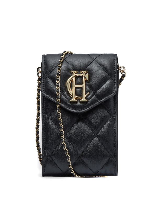 Crafted from premium leather, the Holland Cooper Knightsbridge phone pouch is an everyday staple accessory. Effortlessly matching any outfit, this compact Holland Cooper bag conveniently fits your mobile phone while adding a stylish touch to your looks. It features the iconic gold HC monogram and comes with a detachable chain strap, perfect for cross-body wear or hanging over the shoulder. Complete with a zip pocket at the back.