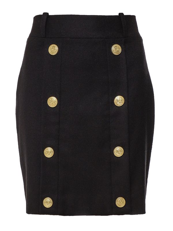 The Holland Cooper Knightsbridge pencil skirt is an effortlessly elegant, transitional piece to pair with a fitted sweater or blouse. Crafted in 100% wool and cut for a sculpting high-rise fit, this luxurious mini skirt is complete with belt loops, a faux wrap front and gold rivets engraved with the classic Holland Cooper crest.