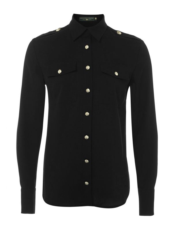 The Holland Cooper luxury shirt is an elevated, everyday essential to take you effortlessly from day to night. Crafted in a soft touch, crease proof fabric, this refined shirt features a button down fastening and twin patch pockets with button closure at the chest. The shirt is accented with signature gold-tone hardware down the front, to the cuffs and at the shoulders, with military-inspired epaulettes providing a stylish finishing touch.
