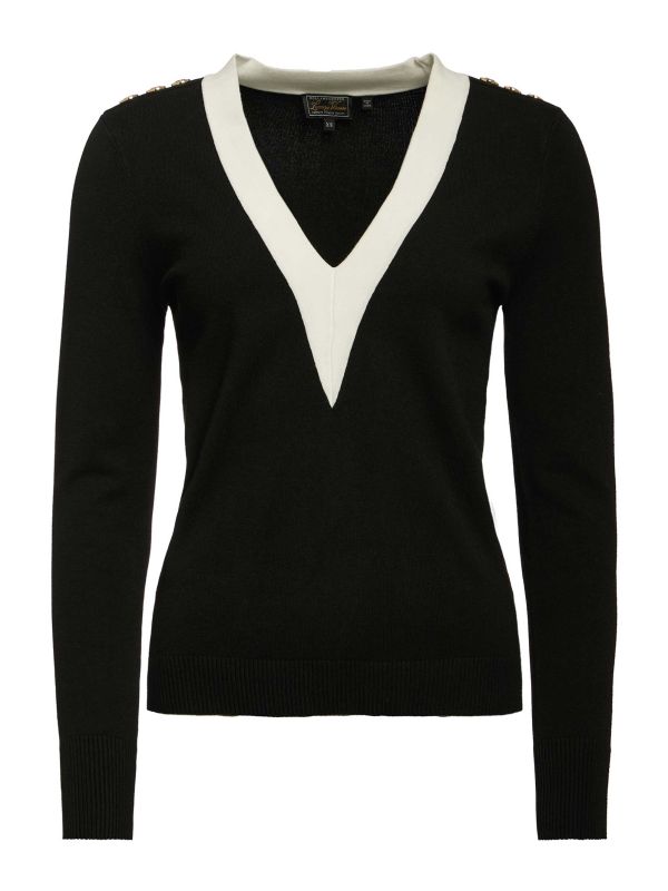 The Macy Knitted Top by Holland Cooper is a sleek style that's designed to contour the silhouette for a flattering fit. Made from a viscose and polyester blend, this Holland Cooper top is distinctive by its contrasting, deep V neckline. It has long sleeves and a structured look, perfect for curating chic outfits both for casual and more formal occasions.