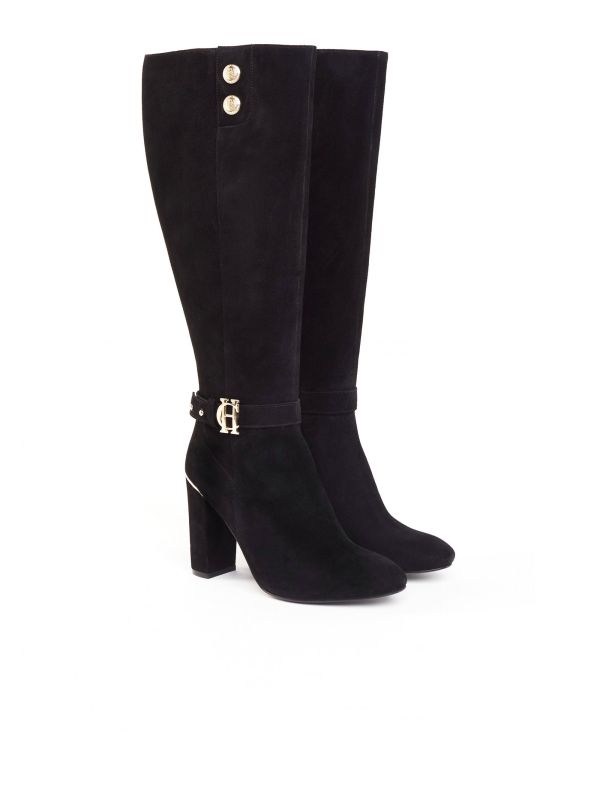 The Holland Cooper Marlborough boots are perfect for adding an elegant touch to your outfit. Beautifully crafted from pure soft suede with a brushed finish, these knee length boots boast a contour hugging silhouette. Featuring an ankle strap with Holland Cooper hardware, a side zip fastening and two branded rivets to the top of the boot, these Holland Cooper boots are perfect for creating an effortless style.