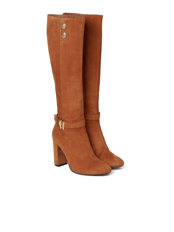 The Holland Cooper Marlborough boots are perfect for adding an elegant touch to your outfit. Beautifully crafted from pure soft suede with a brushed finish, these knee length boots boast a contour hugging silhouette. Featuring an ankle strap with Holland Cooper hardware, a side zip fastening and two branded rivets to the top of the boot, these Holland Cooper boots are perfect for creating an effortless style.
