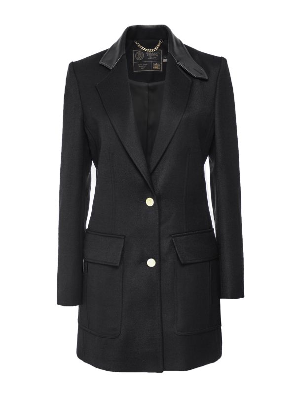 The Holland Cooper Mayfair blazer is an elegant tailored jacket with a modern, relaxed silhouette. This longline Holland Cooper blazer has been expertly hand cut and made entirely in England from the finest wool. It boasts a single-breasted silhouette, tailored sleeves and a contrast leather collar and elbow patches for a chic finish.