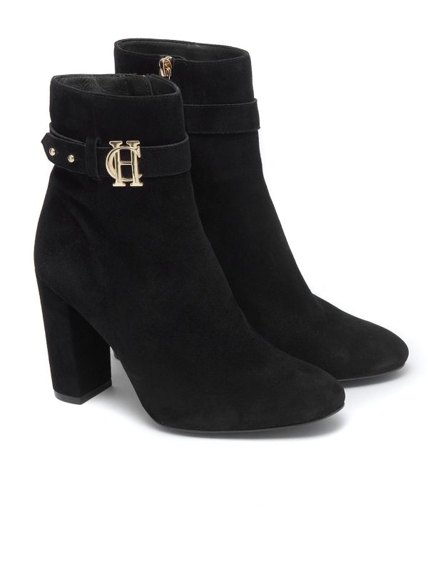 Add sophistication to your smart and smart casual wardrobe with the Holland Cooper Mayfair boots. Beautifully crafted from pure calf leather suede, the boots boast a super soft touch. With a flattering ankle length, these heeled Holland Cooper boots feature signature gold hardware and are finished with a quirky strap to the ankle with HC branding.