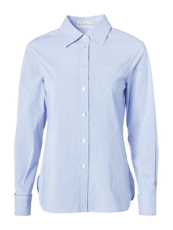 The Melina Shirt by Holland Cooper is one for your forever shirt collection. Made from crisp cotton poplin fabric, this Holland Cooper shirt is a classic style with contemporary details. Featuring all-over stripes, it has a classic collar, engraved buttons, double cuffs with gold cufflinks, a chest pocket with HC embroidery and a slim, tailored silhouette.