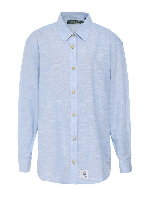 The Holland Cooper oversized cotton shirt is a laid-back staple for everyday wear. Perfect for throwing on with your favourite jeans or layered over a vest with rolled sleeves, this versatile shirt is a must for off-duty days. Cut from 100% cotton, it's lightweight, breathable and features a button down fastening, classic pointed collar, long sleeves and signature gold-tone hardware.