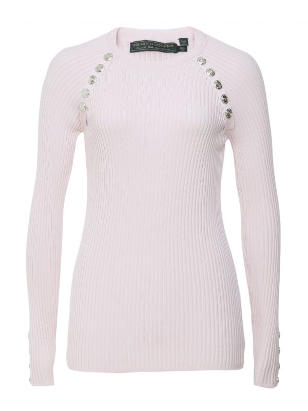 The Holland Cooper raglan button knit is a sophisticated staple for your trans-seasonal wardrobe. This effortless everyday sweater is crafted in a sumptuously soft blend, with a ribbed construction that perfectly flatters the figure. The sweater boasts a classic crew neck and raglan sleeves, while signature silver-tone button details at the collar and cuffs provide a luxe finishing touch.