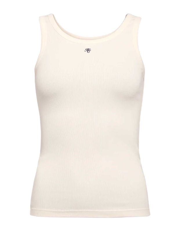 The Rebecca Rib Tank by Holland Cooper is a fitted, ribbed knitted tank with a high round neckline and narrow shoulder straps. A small tonal logo sits at the chest and the brand name is embroidered at the upper back for a signature finish. Cut to a close, body-skimming silhouette, it layers smoothly beneath blazers or sits alone with high-waist denim. Its minimalist shape means it pairs easily with tailored Pants or layers under coats for cooler days.