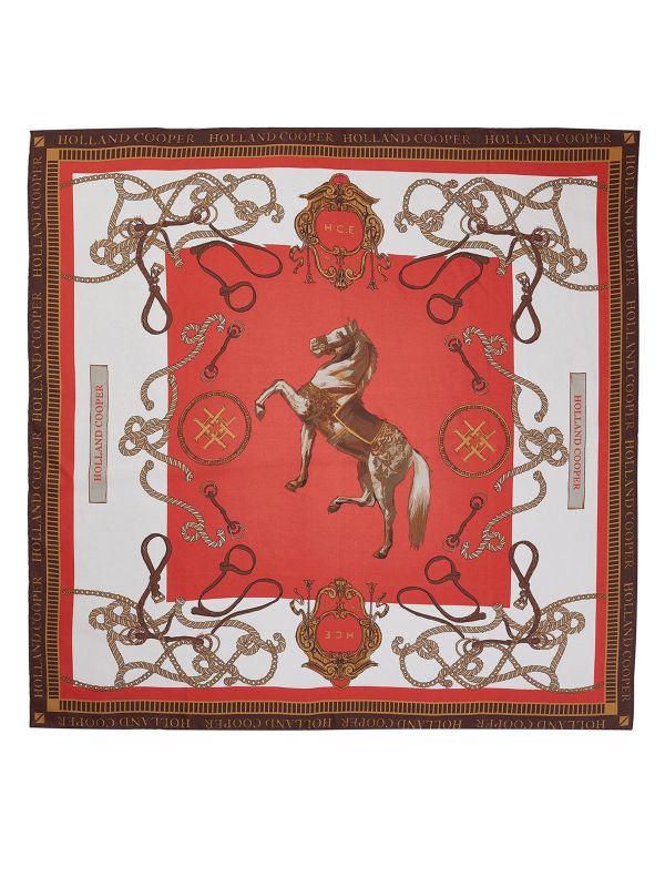 The Holland Cooper Regal Horse silk scarf is an ultra-chic accessory designed to elevate any look. Hand-rolled and made in England using the finest pure silk, this elegant scarf features HC signature artwork and is easy to knot and style in several ways. Wear it around your neck, use it as a belt or tie it onto the handle of a tote.