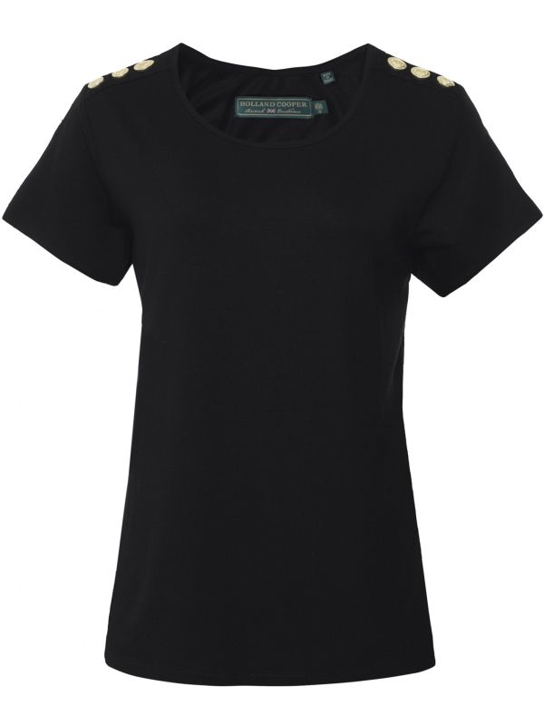 The easy to wear Holland Cooper crew neck t-shirt is an essential for your everyday wardrobe. Made from a soft stretch fabric for elevated comfort, this relaxed fit tee features a crew neck, short sleeves, signature gold-tone buttons and branded embroidery at the nape. Team it with your favourite jeans and sneakers for a cool, laid-back look.