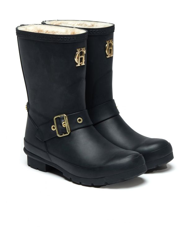 Embrace the rain and snow in style with the Holland Cooper Chelsea wellington boots. Expertly crafted from waterproof rubber, the boots boast an irresistible sherpa lining. Featuring Holland Cooper gold metal hardware and a buckle detail, the Holland Cooper wellies are finished with a gold metal zip at the back.