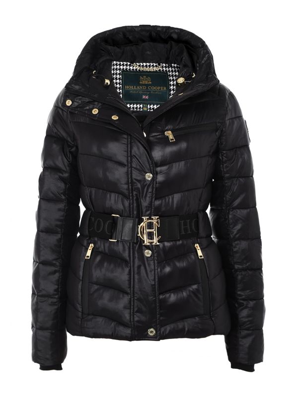Get a luxurious look this season with the Holland Cooper Vermont puffer jacket. This lustrous quilted jacket features an integrated belt for a flattering fit, complete with a signature HC buckle. The jacket has a zip and snap button fastening, oversized face framing hood, three zippered pockets, a coated exterior and gold-tone hardware for a glamorous finishing touch.