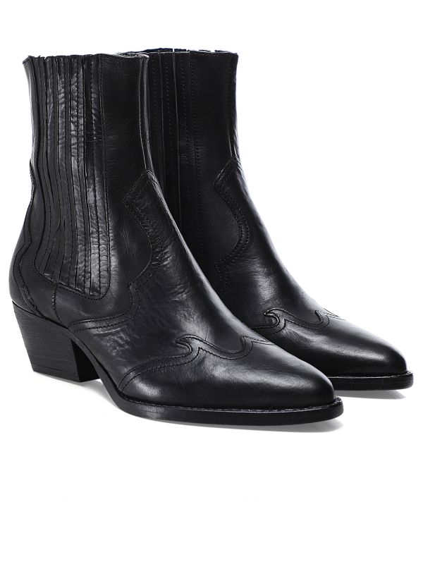 The Hudson London Sienna boots are a timeless staple piece to complete your go-to ensembles. Beautifully crafted in smooth black leather, these timeless boots sit on a classic stacked Cuban heel. The elasticated panel provides a comfortable fit, while the pointed toe and western details provide a chic finish. Team with all your favourite outfits to add an elegant finishing touch to your looks.