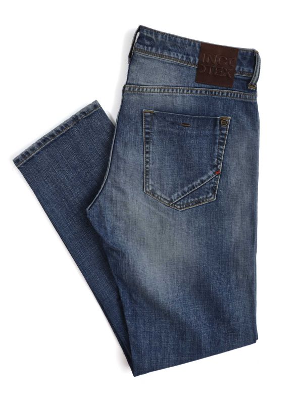 The Incotex Denim Five-Pocket Jeans present a considered take on everyday denim. Designed with classic five-pocket construction, metal rivets and a coin pocket, they show subtle faded treatments and a branded waistband patch for an authentic finish. The cut gives a clean silhouette suitable for casual and smart-casual looks, while belt loops allow easy styling with jackets or shirts. Durable stitching and quality hardware complete the build. Ideal for rotation, they offer dependable construction and easy care, making them practical for frequent wear.