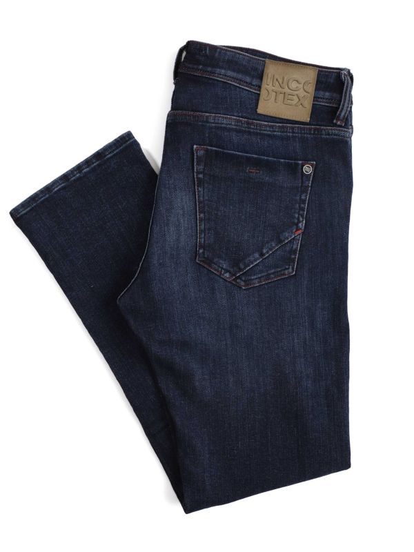 The Incotex Five-Pocket Denim Jeans combine purposeful detailing with everyday wearability. Featuring a five-pocket layout, contrast topstitching and rivet trims, they are finished with a branded leather waistband patch and belt loops for easy styling. The coin pocket and robust construction speak to practical design, while a tailored cut offers contemporary proportion. Subtle worn detailing adds casual character while maintaining structure, making these jeans a versatile option for relaxed to smart-casual looks.