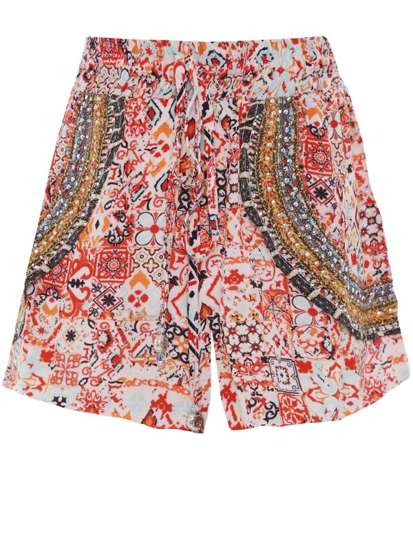 The Inoa Aleppo shorts are an essential piece for your everyday wardrobe, cut from silk for an ultra comfortable fit. These beautiful shorts feature an all-over 'Aleppo' print and crystal embellishment for a dose of cool bohemian style, while an elastic waistband, tie front and spacious front pockets complete the look. Wear with your favourite cami and sandals.