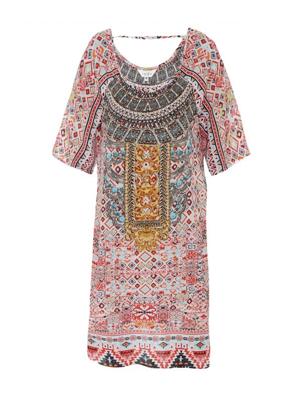 Refresh your summer wardrobe with the Inoa Aleppo slit sleeve dress. Made from silk, this luxe mini dress is a lightweight and comfortable option for laid-back styling. It features a round neckline, 3/4 sleeves with slit detail and a cutout back, while its distinctive 'Aleppo' print completes the look.
