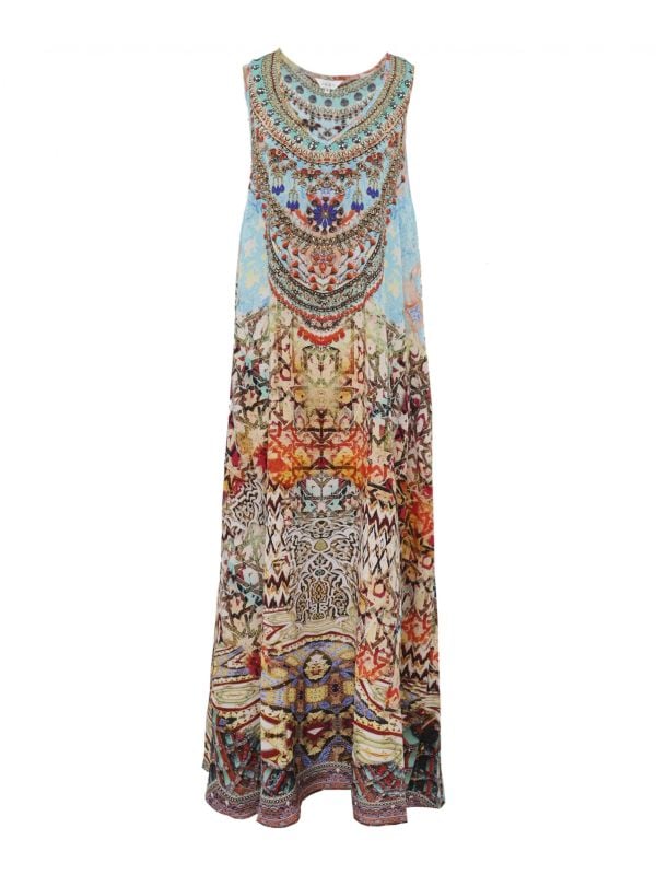 Add a touch of luxury to your holiday wardrobe with the Inoa Arizona maxi dress. Skilfully handcrafted in silk with embellished crystal details, this distinctive dress has a sleeveless design and features a v-neck and elegant draped silhouette. This summery maxi dress is adorned with the brand's SS20 'Arizona' print for a bold statement finish and will look great teamed with sandals on your next city break.