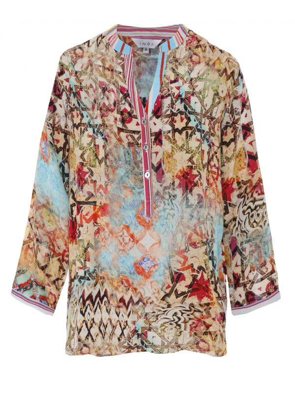 Get an effortlessly elegant look this season with the Inoa Arizona Milano shirt. This lightweight shirt is crafted in silk and features the label's boho 'Arizona' print, while a half-length button placket, 3/4 sleeves and contrast trim add a sophisticated edge. This feminine staple piece is a must for teaming with your favourite jeans and sandals this season.
