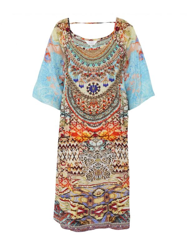 Get a stylish statement look with the Inoa Arizona slit sleeve dress. Made from silk, this beautiful mini dress is an effortless option for laid-back styling. It features a round neckline, 3/4 sleeves with slit detail and a cutout back, while its unique Arizona print provides a bohemian finishing touch.