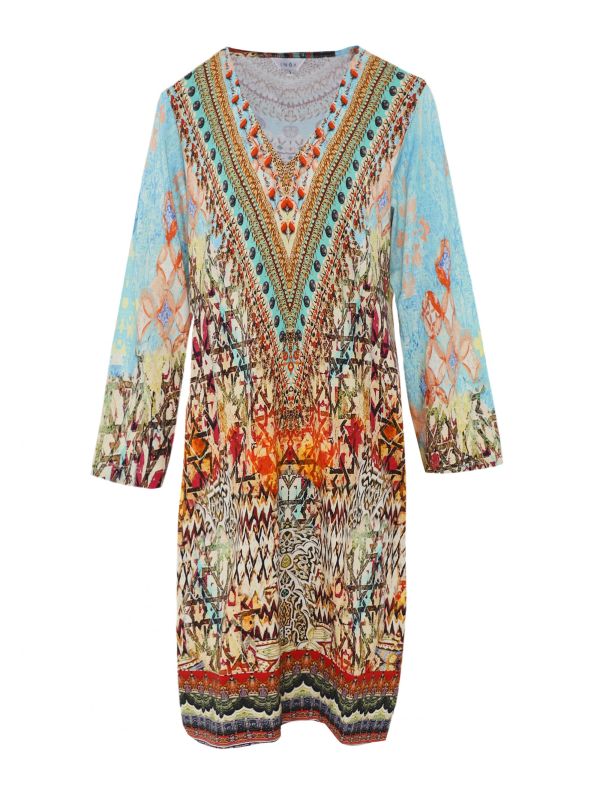 Add a dose of bohemian style to your summer wardrobe with the Inoa Arizona V-neck dress. Skilfully designed for a comfortable fit, this relaxed stretch-fit dress is an effortless piece to team with sandals or sneakers. It features a deep V-neck for a flattering look and is complete with long sleeves and a distinctive all-over 'Arizona' print.