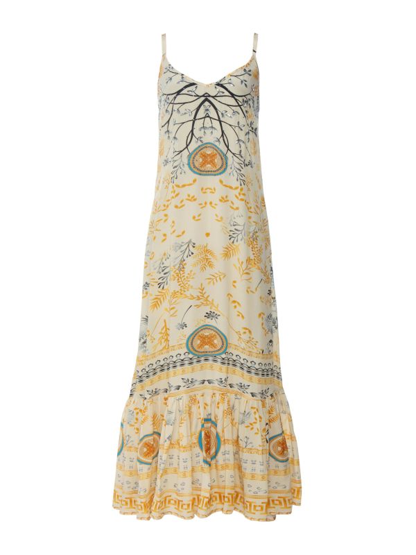 The Inoa Brisbane maxi dress is a beautiful piece for your holiday wardrobe. Designed with a colorful print and embellished crystal details, this elegant dress provides a statement summer look. It's complete with a V-neck, adjustable shoulder straps and a flared hem for a cool, bohemian aesthetic.