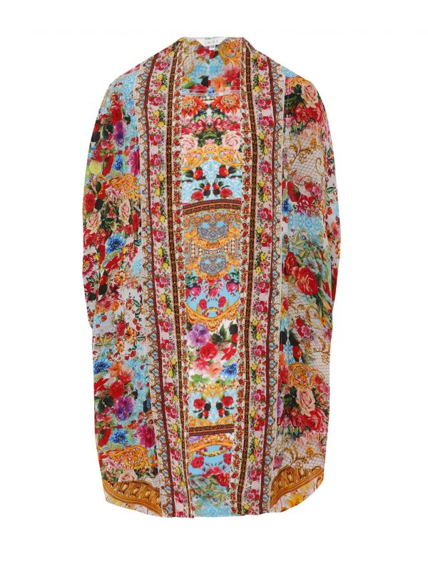 Elevate your summer ensembles with the Inoa Covent Garden shrug. This casual kimono-style jacket has been expertly crafted in silk and features an open front, draped sleeves and contrast trim detail. The shrug features the beautiful floral 'Covent Garden' print for a dainty feminine look.