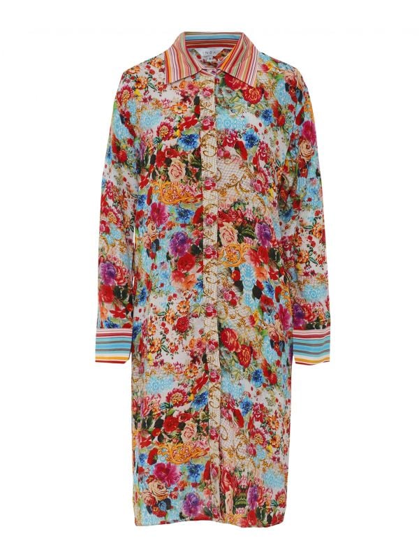Get a stylish everyday look this season with the Inoa Covent Garden shirt dress. Expertly crafted in silk, this casual dress is adorned with the beautiful floral 'Covent Garden' print and features a button down fastening, concealed placket and 3/4 sleeves, with a contrast trim at the collar and cuffs.