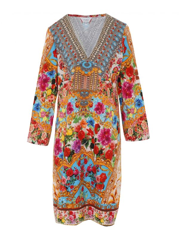 Refresh your spring/summer wardrobe with the Inoa Covent Garden V-neck dress. Expertly designed for a comfortable fit, this relaxed stretch-fit dress is an effortless piece to team with sandals or sneakers. It features a deep V-neck for a flattering look and is complete with long sleeves and a beautiful floral 'Covent Garden' print.