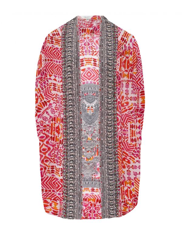 The Inoa Shiraz shrug is a stunning kimono-style jacket, designed with casual summer days and beach holidays in mind. Expertly crafted in silk, this luxe lightweight jacket features an open front, draped sleeves, crystal embellishment and a unique contrast trim detail. The jacket is complete with the label's beautiful 'Shiraz' print for a stylish look.