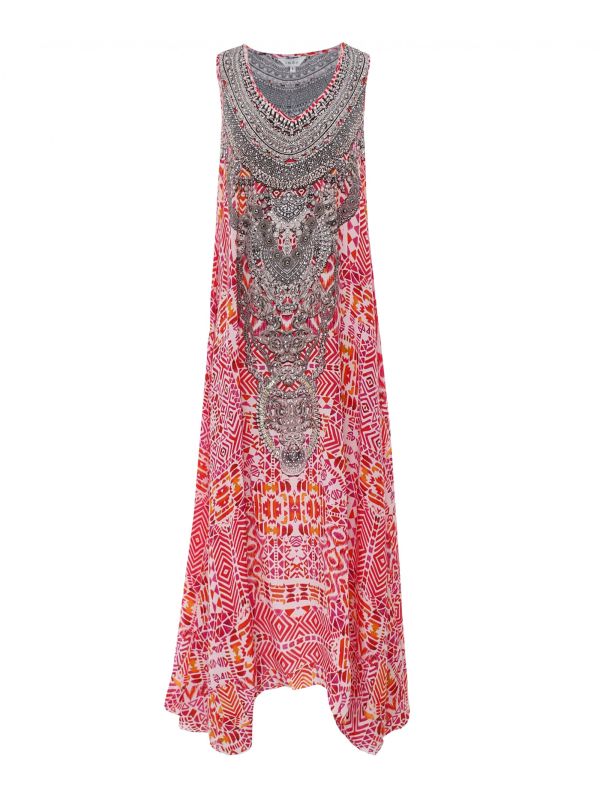 Elevate your new-season wardrobe with the Inoa Shiraz maxi dress. Cut from 100% silk for a relaxed fit, this beautiful dress is essential for laid-back summer days. This unique dress has a sleeveless design and features a flattering V-neck, while its vibrant 'Shiraz' print and embellished crystal details to the front complete the look.