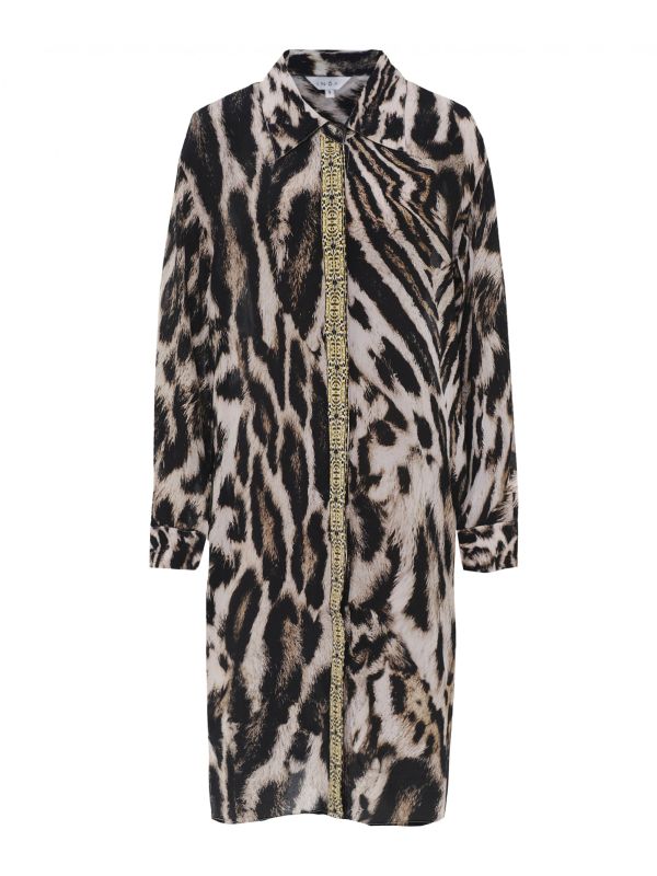The Inoa Siberia shirt dress is a versatile staple for your everyday wardrobe. Cut from silk, this ultra comfortable dress is oh-so-easy to team with your favourite white sneakers. It features a button down fastening, long sleeves and contrast trim detail down the front, with a chic 'Siberia' animal print throughout.