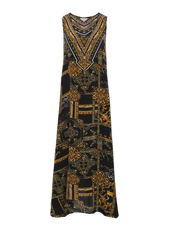 Add a dose of statement style to your summer wardrobe with the Inoa Verona maxi dress. Beautifully crafted in silk, the dress features a plunging neckline, sleeveless design and a flared hem for a fluid silhouette. Adorned with the label's Verona print and complete with crystal embellishment, this distinctive dress promises a sophisticated look.